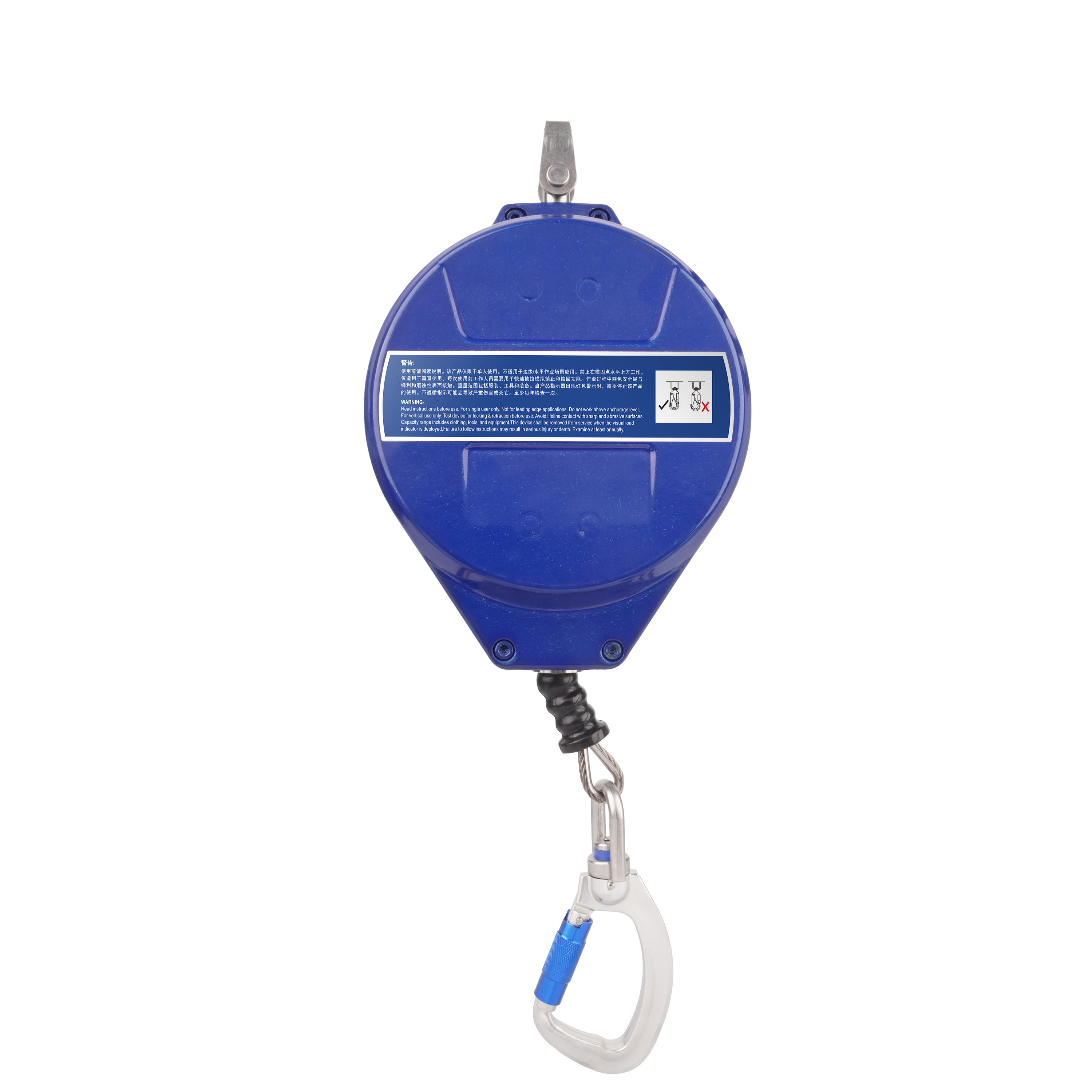 体积小,质量轻顶部悬挂点和安全钩均可360°旋转,安全钩带坠落指示器渐进式内置缓冲(专利),吸能效果好且稳定,冲击力小、坠落距离短三套独立锁止结构(专利),锁止距离短、稳定性高选用热镀锌航空钢丝绳,柔性好、强度高、不易打结进口发条力值平均、收放自如顺畅