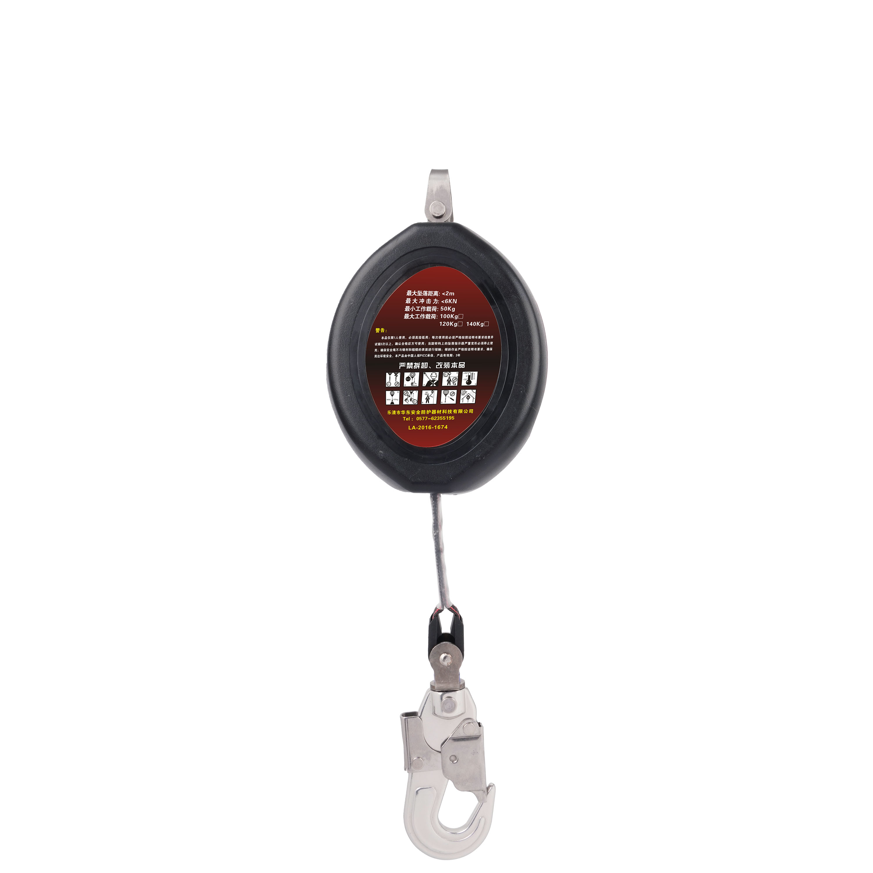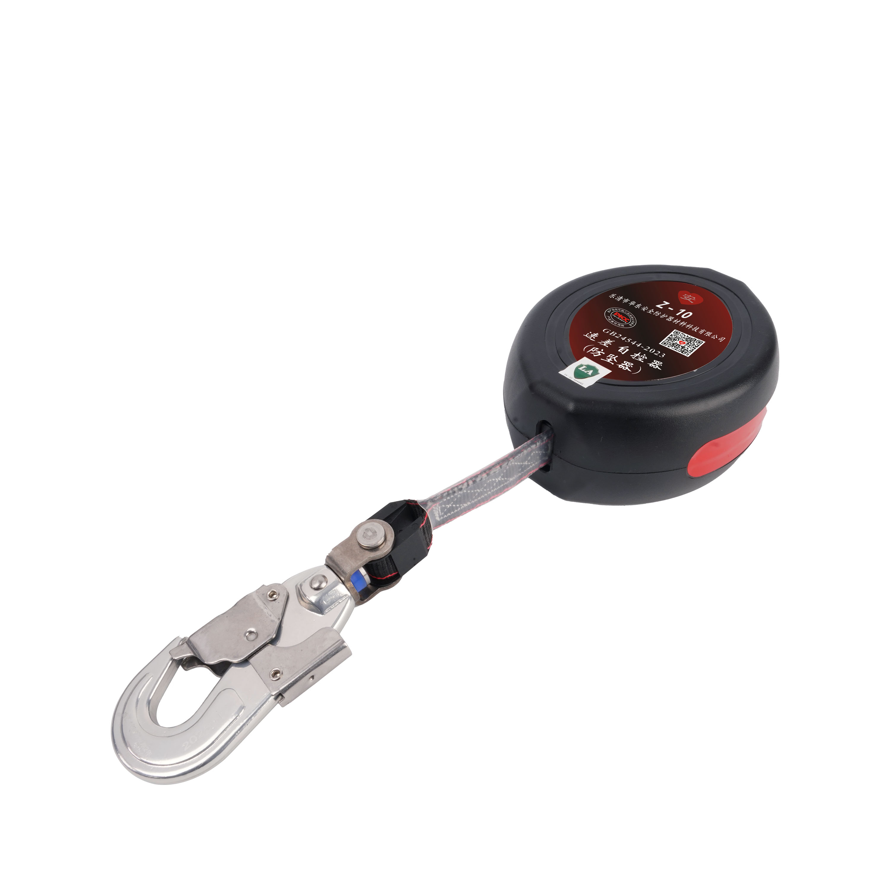 体积小,质量轻顶部悬挂点和安全钩均可360°旋转,安全钩带坠落指示器渐进式内置缓冲(专利),吸能效果好且稳定,冲击力小、坠落距离短三套独立锁止结构(专利),锁止距离短、稳定性高进口发条力值平稳、收放自如顺畅织带末端有连接保护套